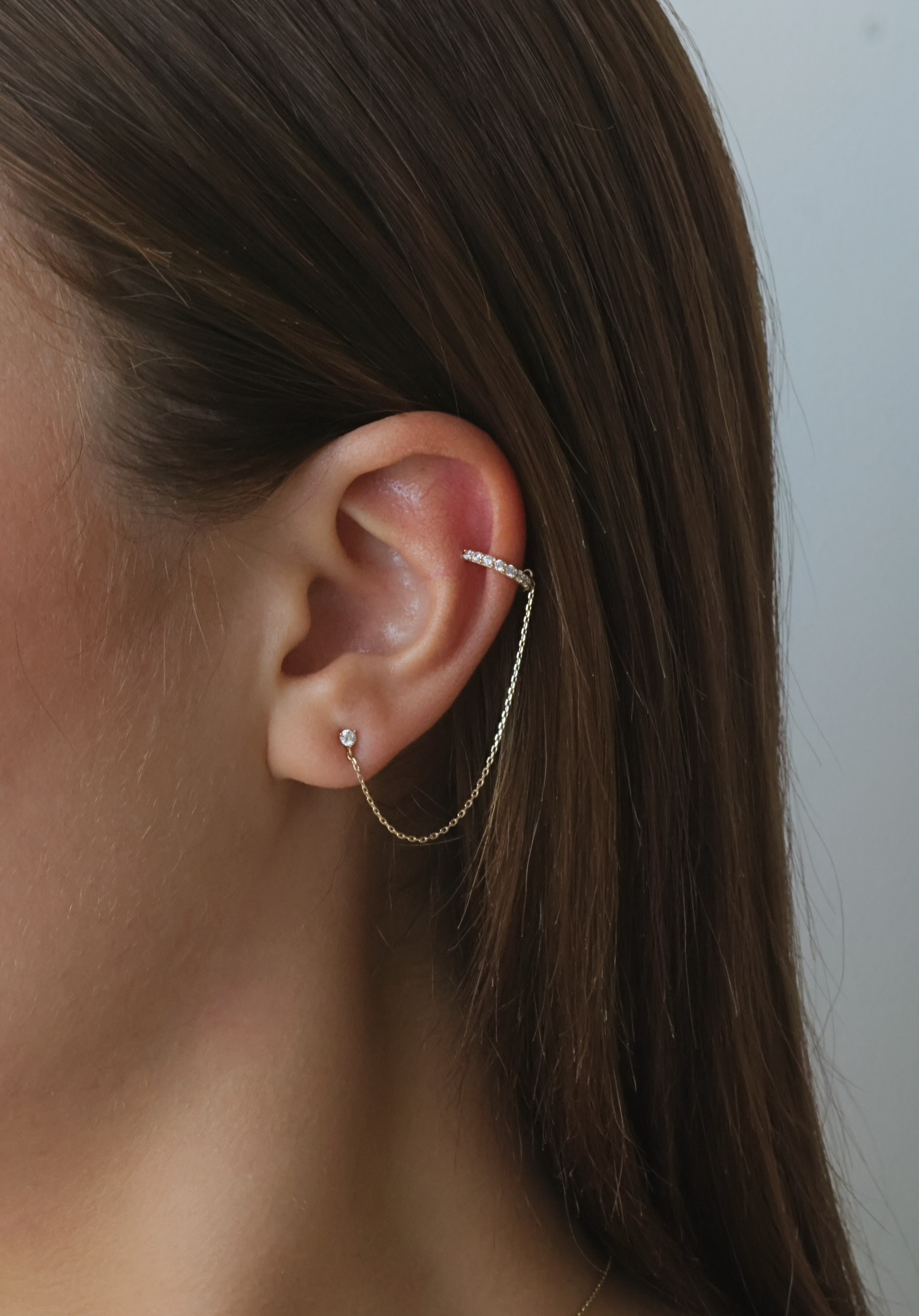 - Earring stud connected to cuff